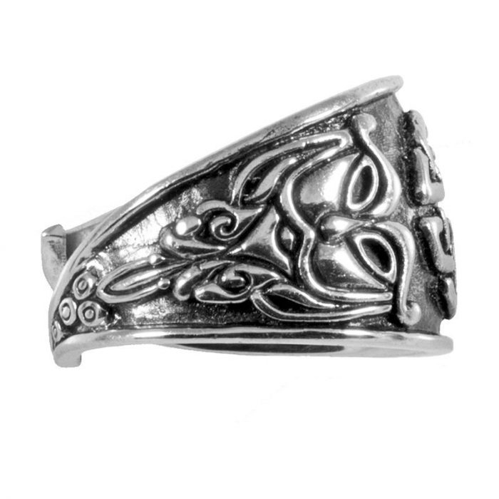 Sehr schöner und massiv gearbeiteter Keltischer Ring (925er Silber/groß) mit typischem, keltischen Knotework und einer Keltenmaske wie sie auf diversen Fundstücken zu finden war, dieser Ring ist aus massivem 925er Sterlingsilber und verstellbar