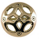 Diese Rundfibel (Bronze) ist ein Originalfundstück und stammt aus der Vendelzeit Gotlands um ca. 650 n.Chr., es handelt sich um eine kleine runde Fibel in Originalgröße (2,8 cm Durchmesser), mit durchbrochenen, geometrischen Verzierungen und typischen Kreisaugen.